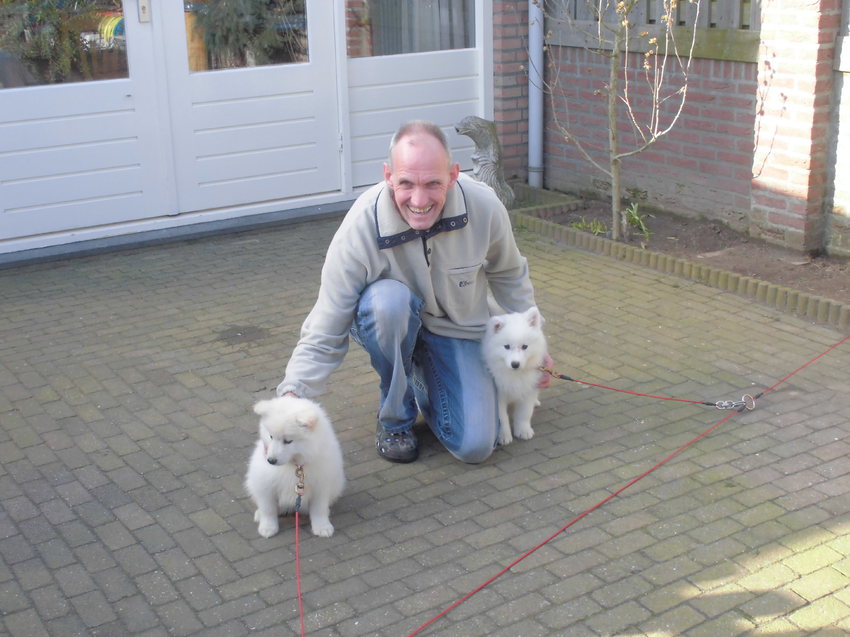 Hij komt nu wat vaker op het tweede plan, omdat de pups s, morgens als eerste naar buiten moeten, maar hij accepteerd het goed.