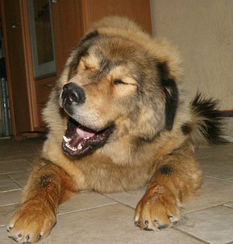 Een pitbull ofzo vonden ze te klein, ze wilden een echte "vechtmachine" en de talloze foto's op het internet (typ maar een tibetan mastiff en je begrijpt wat ik bedoel) van die wild uitziende honden met hun tanden bloot dat vonden ze wel iets hebben.