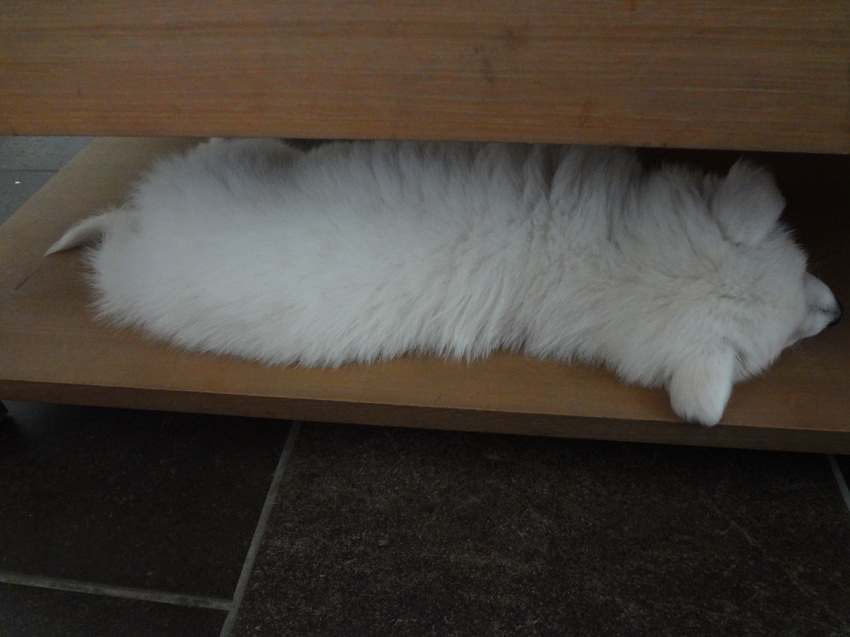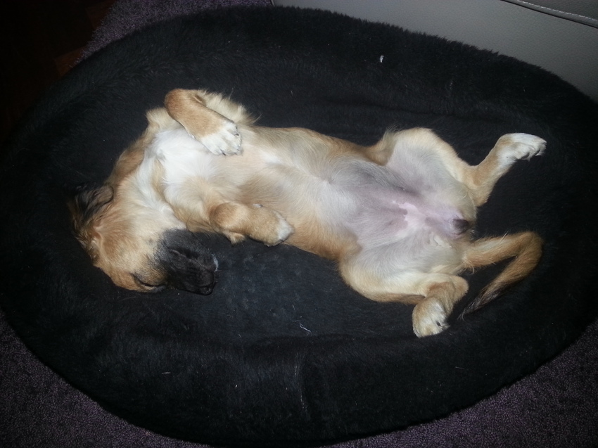 Joey viel in slaap op een demodag bij DogPop in Den Haag: