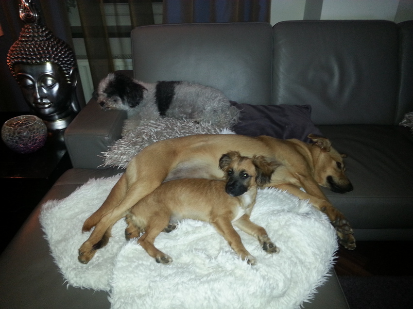 Zafiro ligt op de eerste foto bij mij op schoot op de bank en met zijn koppie op de salontafel,