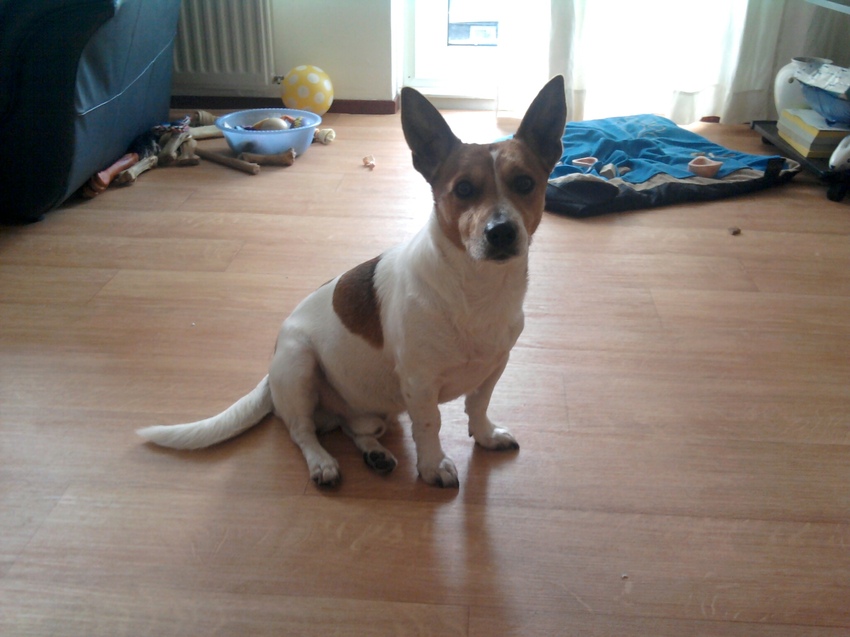 Iris zo zit ze altijd.als ze de bal wil in het park,gaat ze zo zitten.als ze een koekje krijgt trippeld ze met haar achterpootjes naar achteren en haar voorpootjes opgetrokken.als ze wil eten zit ze ook zo en komt en nog een blafje bij.ik noem naar ook mijn stokstaartjes.want die zitten ook altijd zo als Poppy.![]()