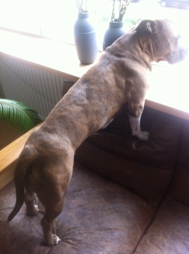 Heb er zelf geen, maar hier wat foto's van Trix (AmStaff van mijn nonkel) toen ze bij ons op bezoek was.