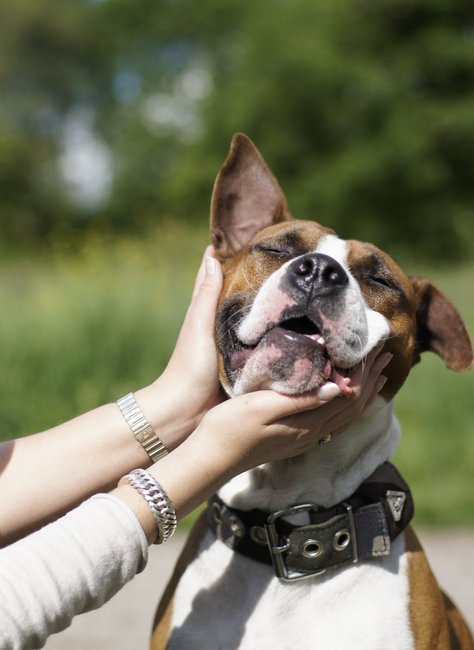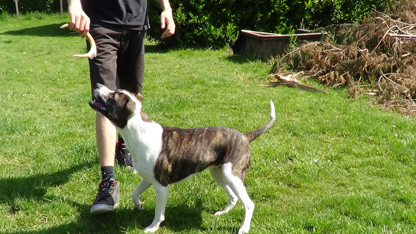 Mag ik heel gemeen zijn en zeggen dat ik het grappig vind dat de hond meer spier heeft dan de persoon op de foto. ;p