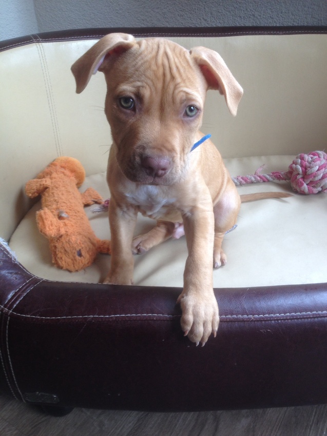 ooh hij heeft 2 weken lang lopen vervelen joh. heel de dag door blaffen na je, als je niet reageert in je armen proberen te bijten. Als ik me was uit de wasmachine haalde, proberen alles te jatten. Als je even rustig zat, keek ie je aan en sprong ineens als een gek boven op je. Ben wel achter 1 ding, wij hebben heeeeeeeeeeel veeeeeeeeeeeeel geduld haha. na uren lang hem te negeren kwam ie uit eindelijk rustig na je toe, en inplaats van te happen krijg je een lik haha. Kan er nu wel om lachen, maar die 2 weken niet echt. Ook het uitlaten ging voor geen meter, continu trekken op alles en iedereen af willen gaan.