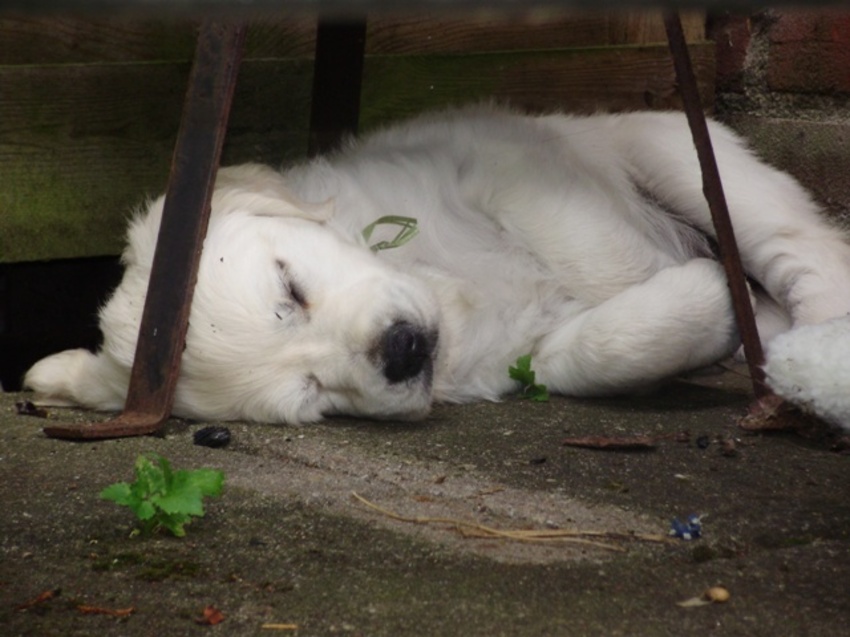 Tara de eerste dag thuis, lekker slapen...