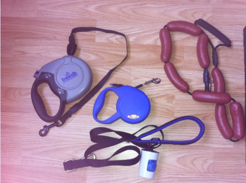 Een zwarte lijn met blauw handvat en eventueel poepzakjeshouder, 1.20 meter.