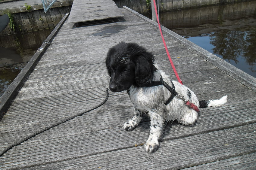 Jazeker!!! Ozzie kan dit ook! Ozzie heeft hier voor het eerst gezwommen, daarna liggen rollen op het zand en de schelpenpaadjes, en daarna had hij het koud en voelde zich vies....Toen ik zij dat hij dan maar wéér het water in moest keek hij zo....hihi