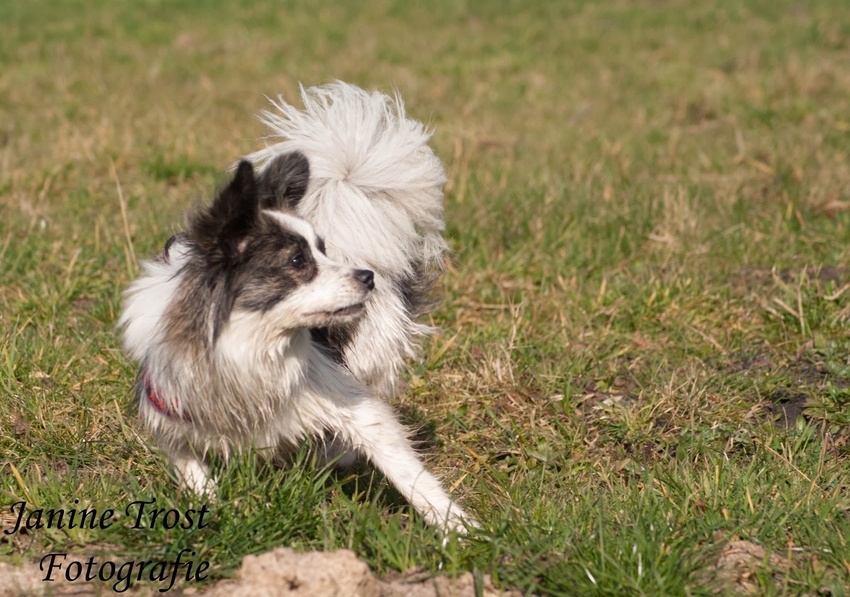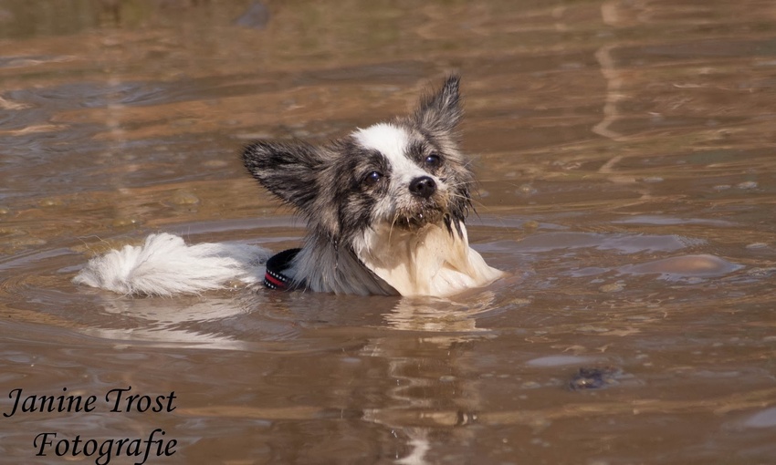 Lola had water gezien en lag er vrijwel meteen in haha, normaal is het pootje baden maar vAndaag heeft ze toch echt gezwommen :)