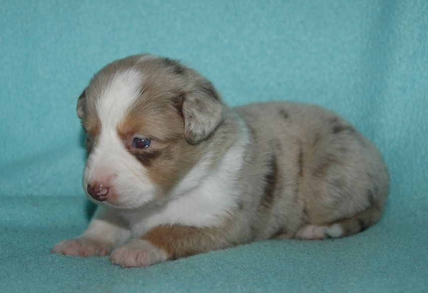 mooie pups, wat zijn ze al gegroeid. ( vindt het red merle teefje geweldig mooi, de andere pups zijn ook mooi, maar de red merle is mijnn favoriet ) vind het ook erg mooi dat er weinig wit in de pups zit.
