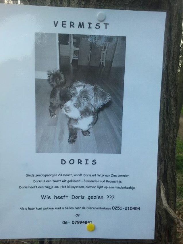ik zag dit toen ik naar school ging in de wijk. helaas kan ik niet zoeken want woon zelf in Westzaan (toen ik pauze had ging ik wel even zoeken naar het hondje)