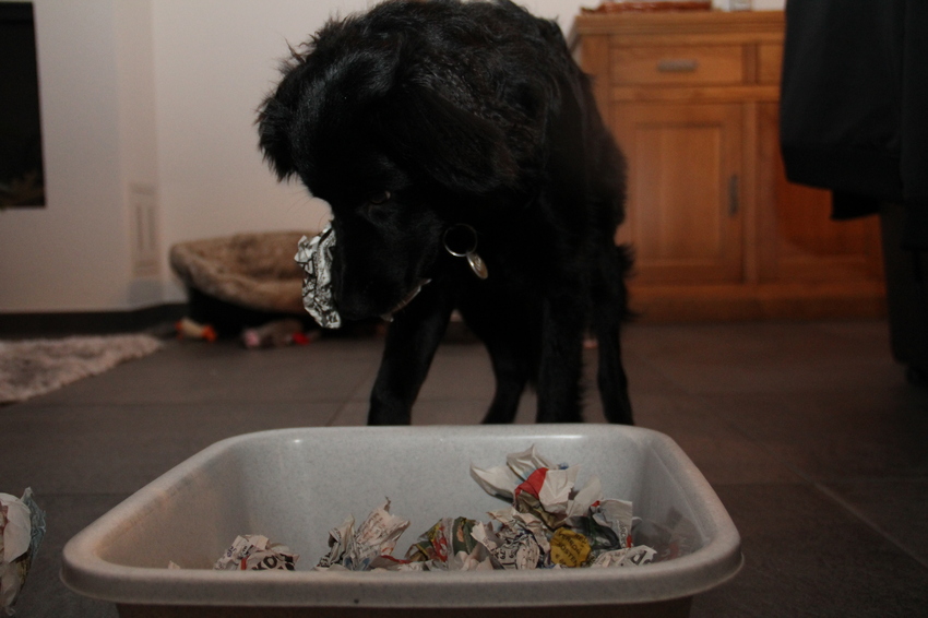 2. Puzzels (foto van je hond tijdens het maken van een hondenpuzzel of het doen van een ander soort denkspelletje)