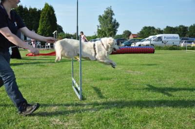 Haha die band. Kan je nu al vertellen dat mijn honden er niet doorheen zullen springen maar eraan zullen hangen.