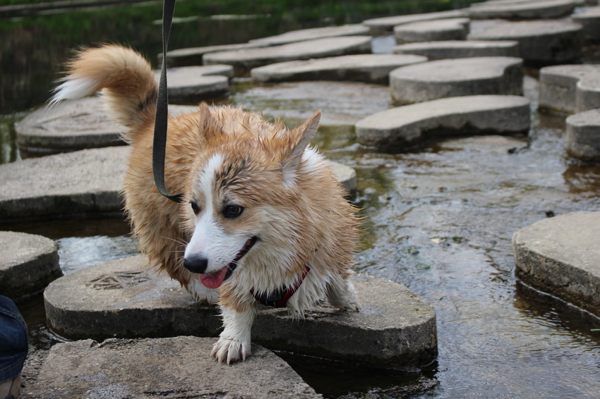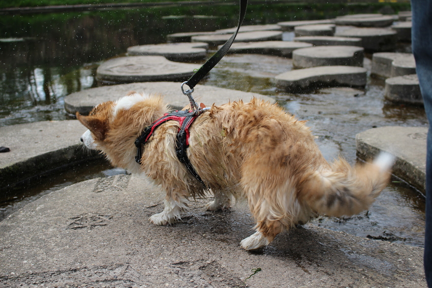 Gelukkig hadden we hem er meteen uit kunnen halen, hij kan namelijk nog niet echt zwemmen en het water was heel diep... En toen was meneer dus helemaal nat ![]()