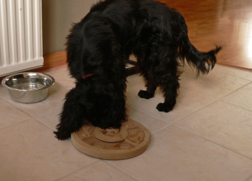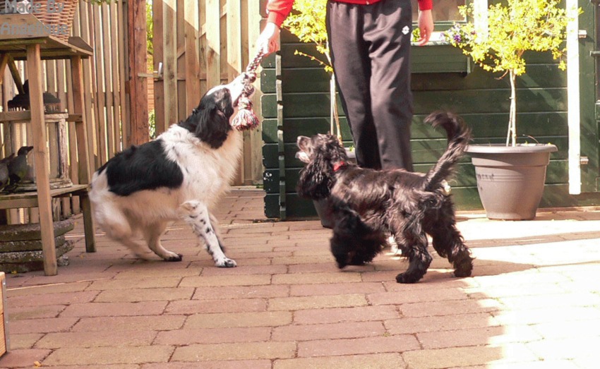 Het beste kan je losliggende speeltjes/kluifjes enz even helemaal opbergen zodat er geen hommeles van kan komen ;)