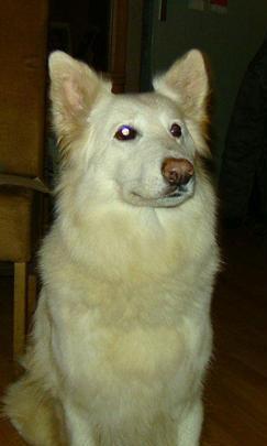 Dit is layka haar mama, zij heeft vrij weinig pigment in haar neus. Layka heeft dit tot dusver nog wel, maar ook als het pigment weggaat blijft zij de liefste voor mij