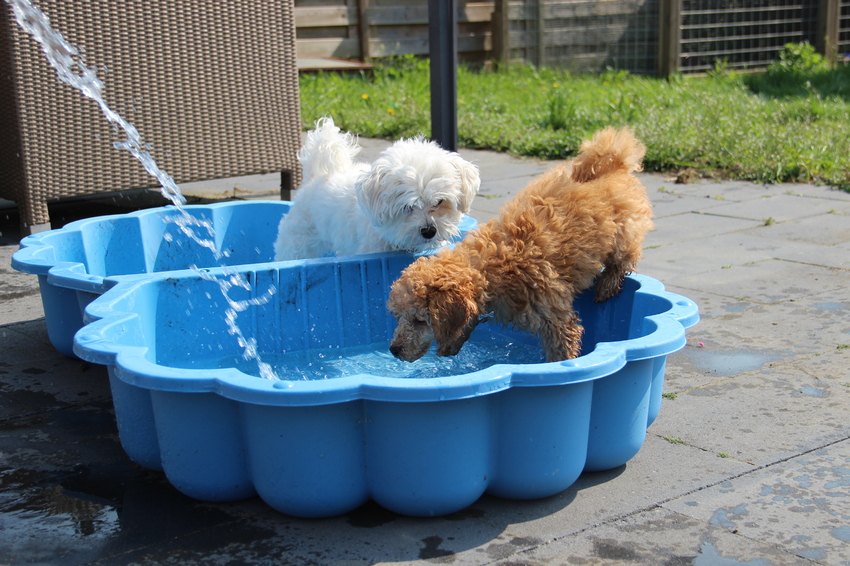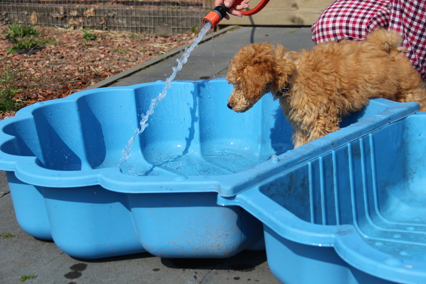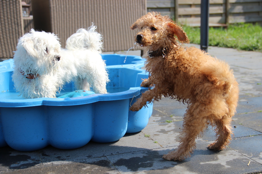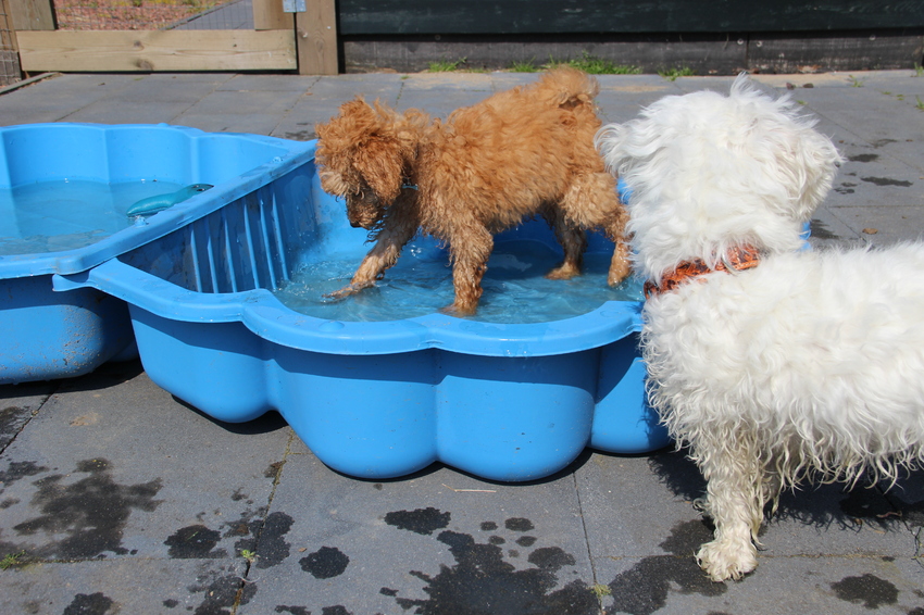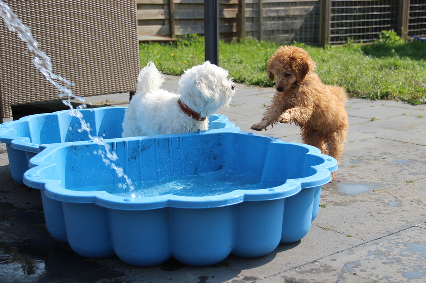 "/> Flynn heeft vandaag voor het eerst in het badje gespeeld en hij vond het gelijk leuk. Ik had ook niet anders verwacht aangezien hij ook steeds in de vijver springt:-P "