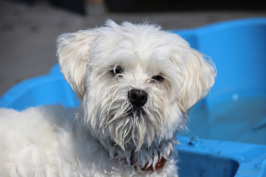Lukie houdt wel van water, maar dan alleen als het echt bloedheet is, dan kan hij even afkoelen.. Soms is hij in een goede bui en wil hij ook graag de sloot in. De zee is wat anders, dan is het meestal alleen even pootjebaden.