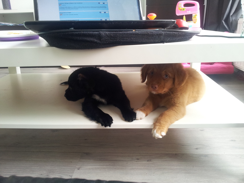 Wolfje is 12 weken (baasje zit ook hier op het forum) en zij komt 2 dagen in de week gezellig hier spelen![]()