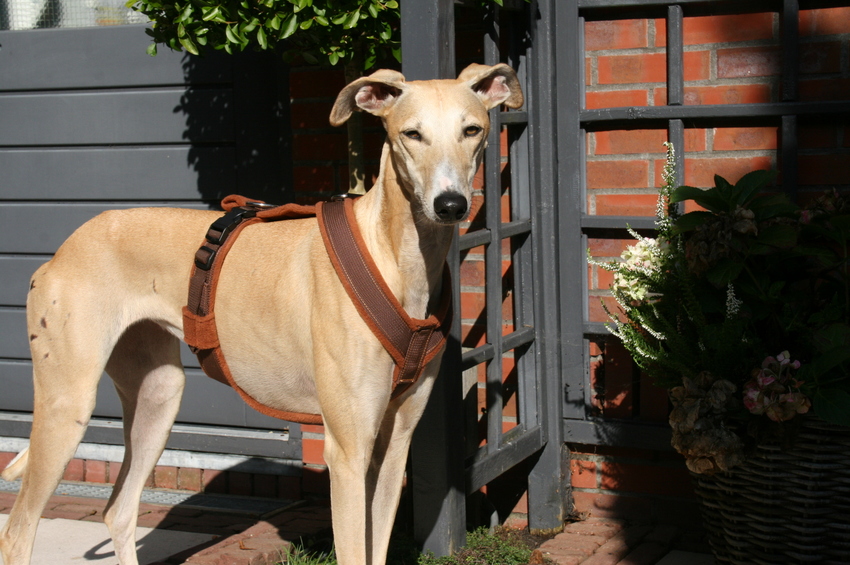 Toevallig zojuist een Hurtta tuig besteld voor onze Basenji. (ook windhond bouw)