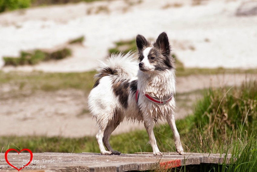Lola kruising keeshondje x vlinderhondje vind alles en iedereen leuk:)houd van bal spelletjes en apporteren