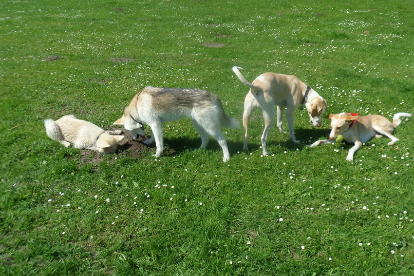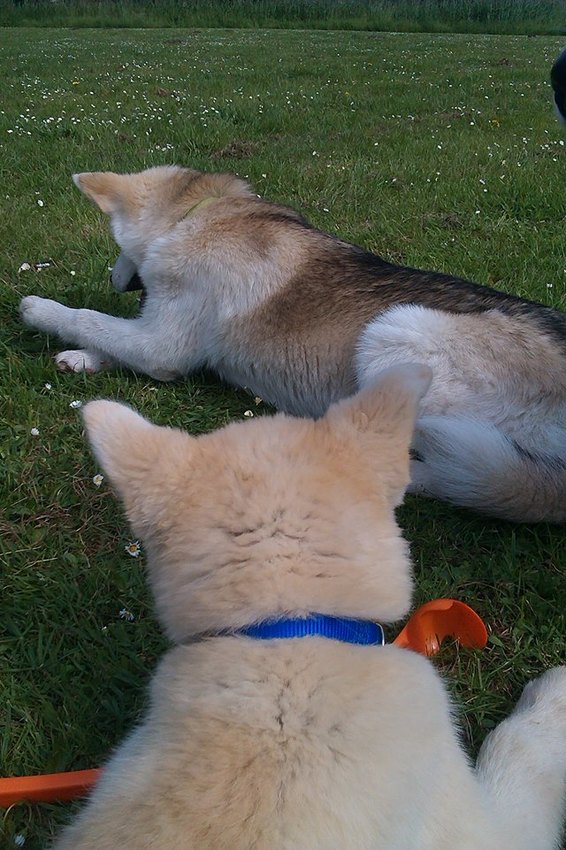 En gelijk voor deze week, want ik liep een beetje achter. Het is zo genieten met deze vier. Kaida en Jomei moesten elkaar echt even leren kennen en met elkaar leren spelen, maar dat is nu 8 poten op een buik =). Ook met Ilios en Luna gaat het super. Nu met het warme weer wandelen we niet al te ver, maar we maken een hoop plezier. Het verschil tussen de pups is ook supergrappig trouwens, Kaida is een echte hondenhond en Jomei een echte mensenhond, Kaida is heel rustig en observeert veel, Jomei gaat gewoon en is in zijn doen en laten veel beweeglijker, Kaida wil niks van water weten, Jomei heeft ontdekt dat een rondje zwemmen heerlijk is. Zo bijzonder om dit mee te mogen maken, echt genieten ![]()