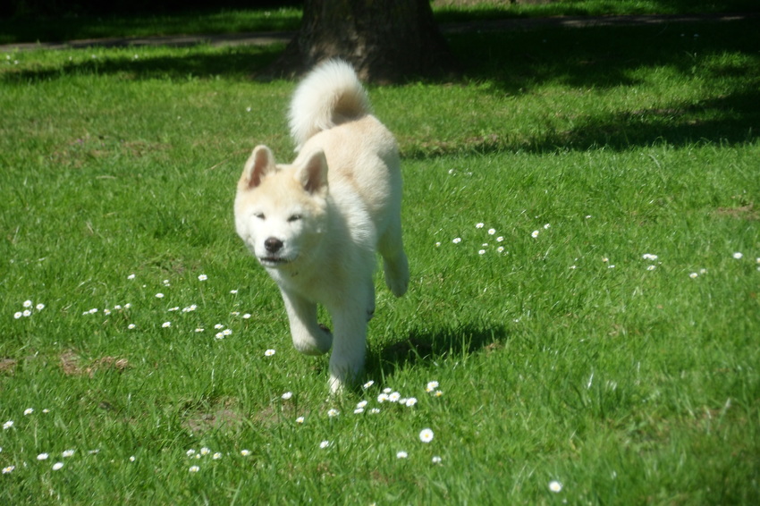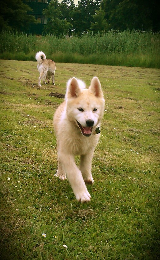 Zo, tijdje niet online geweest maar vrijdag is Jomei veilig aangekomen =)! Wat een heerlijk hondje, hij past perfect bij de rest van de roedel! Uiteraard willen de pups onderling even kijken wie er de baas is maar ik moet zeggen dat het super gaat