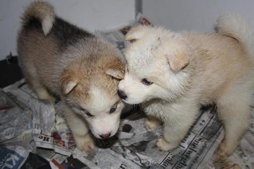 Kaida is het linkerpupje, rechts staat haar broertje Bowie.