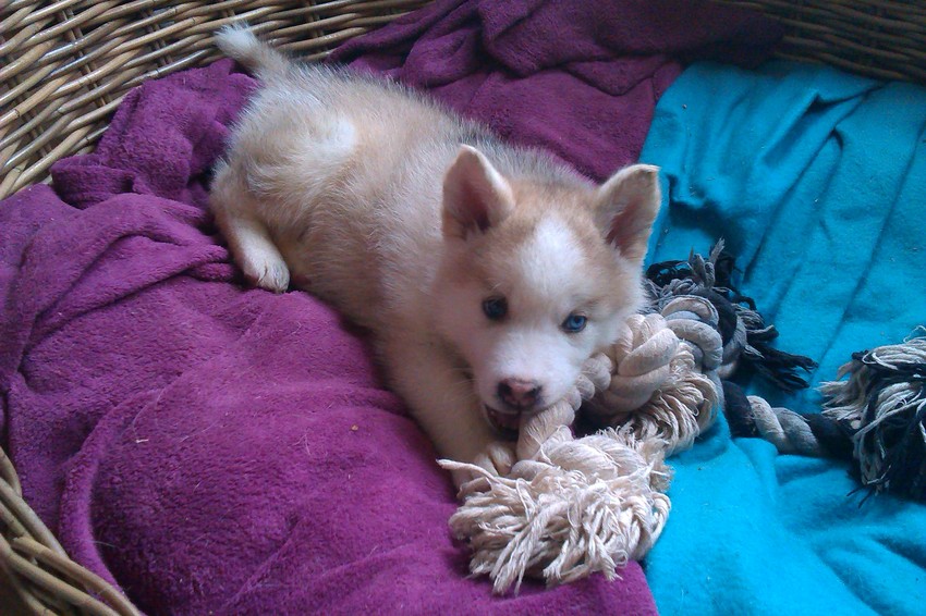 Leuk hondje, lief kopje heeft ze, de heterochromie staat er erg mooi bij. Geniet ervan! Ik ben erg benieuwd hoe ze uitgroeit dus bij dezen, -volg-.
