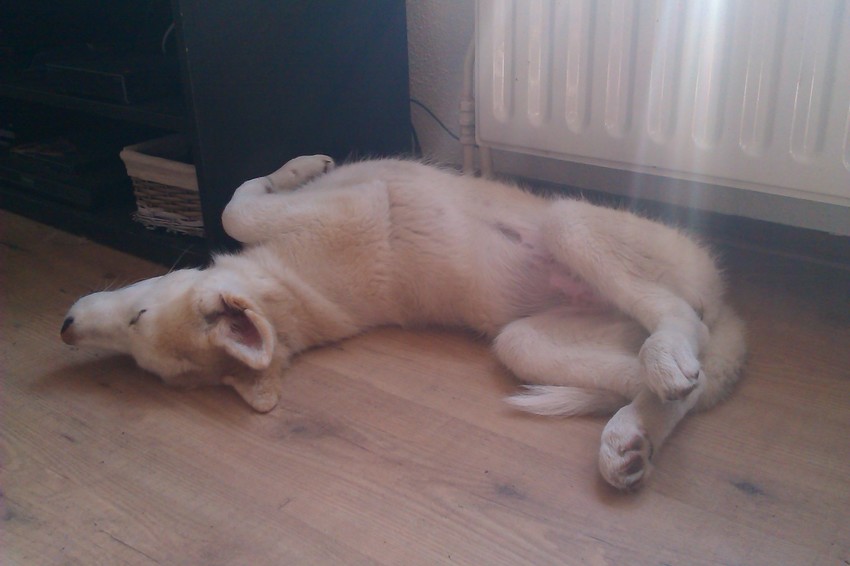 En week 16, onmogelijke puppy lighouding haha