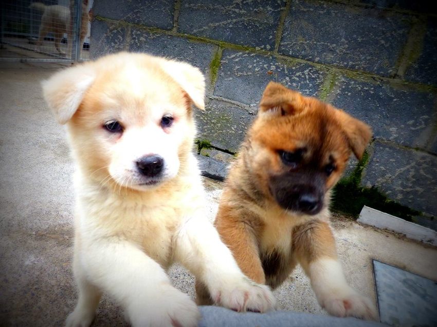 Jij durft, een Akita pup bij een jonge husky akita kruising ![]()