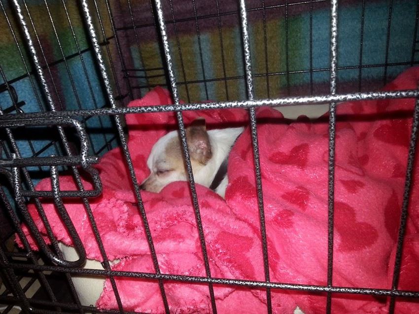 binky vind het nu heerlijk in zijn bedje idd , en dan te bedenken dat hij doodsbang was voor een bench toen hij bij mij kwam ..