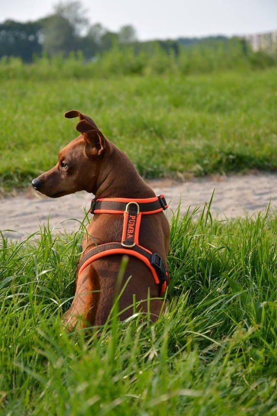 Ik heb voor Pumba een tuigje op maat laten maken. Volgens mij is hij er blij mee!Kijk hem eens showen! Met dit tuigje is hij ook gelijk klaar voor het WK voetbal ![]()