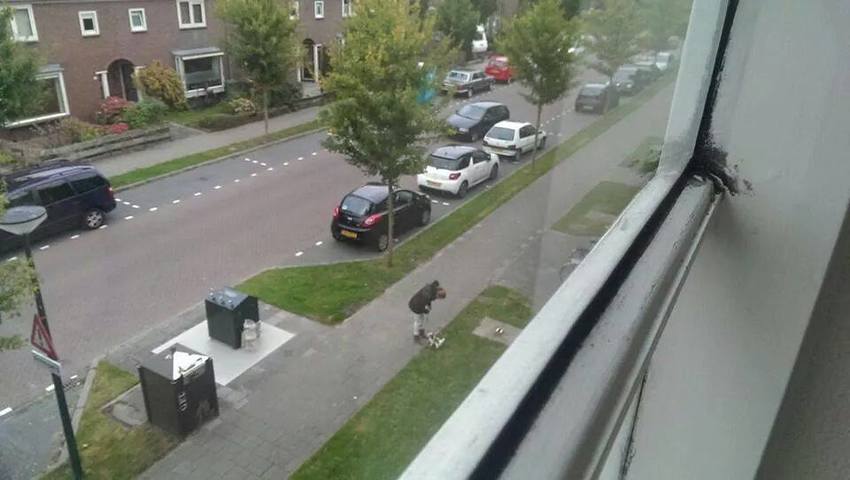 Dag 3: Vanaf ons appartement foto genomen hoe ik Hinke uitlaat bij ons in de straat.