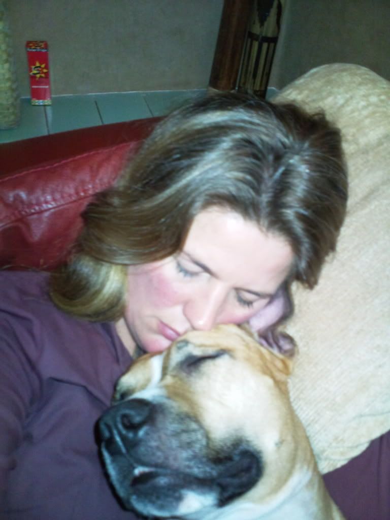 en het liefste liggen ze samen tegelijk boven op je, maar ik moet zeggen ik vind het niet erg ik slaap zelfs met 1 van de honden op mijn buik op de bank of stoel hier is zo een leuke foto