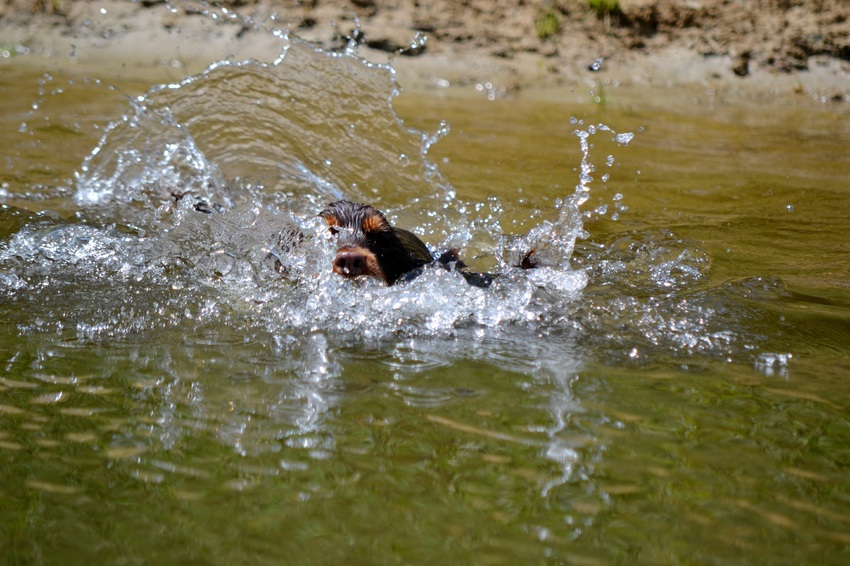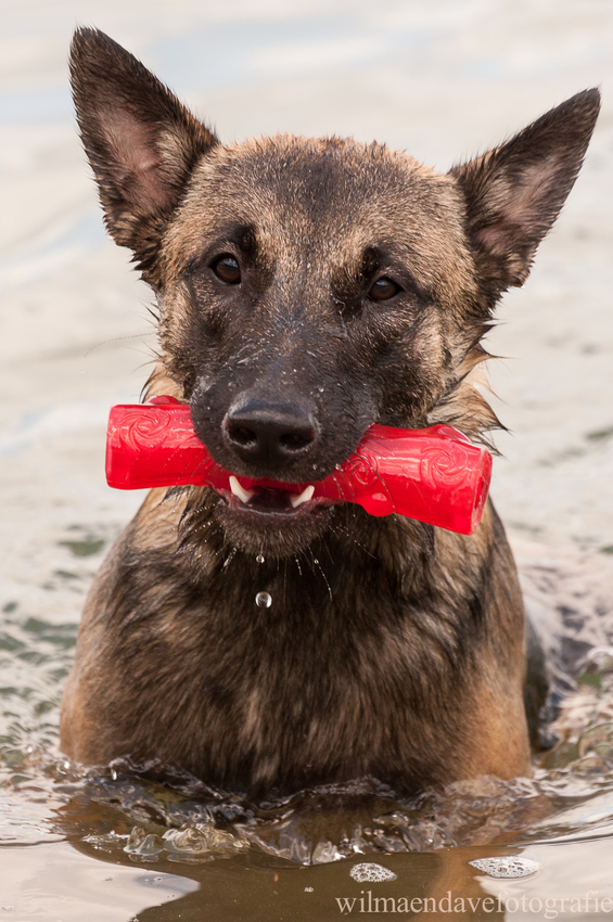 Hier heb ik er genoeg van.. Zwemmen doet hij nog niet, maar lekker vies worden ja dat kan hij wel