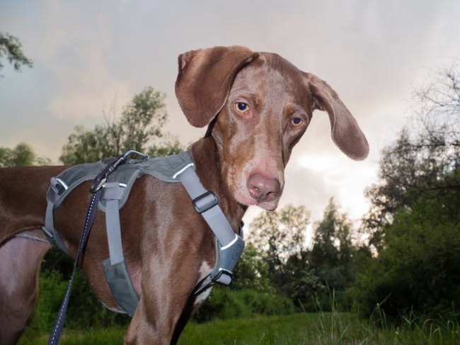 je kan ook leuke foto's maken door de foto op hoogte van de hond te nemen.