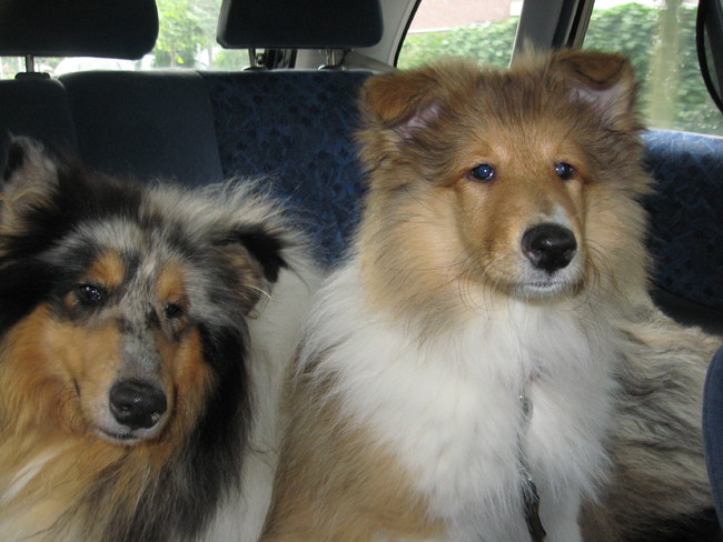 Hier een paar foto's van de 2 meiden in de auto en Bikkel die bij mij voorin zit