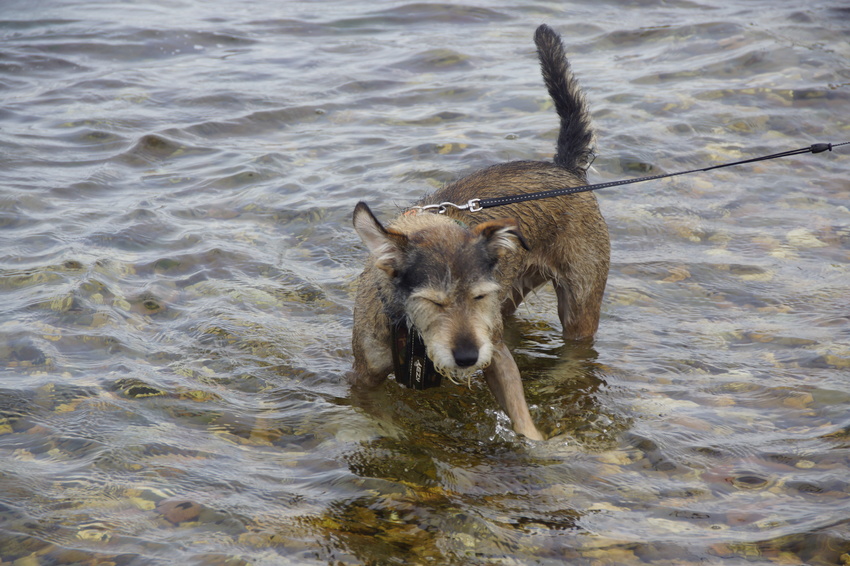 Er blijft echt maar heel weinig hond over als hij net het water uitkomt, maar ik weet niet of je dat echt goed ziet hier.