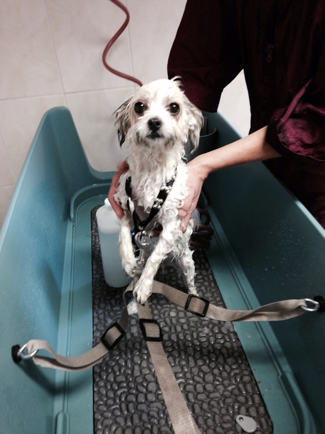 Ziva haaat water dus heb er niet veel, deze is genomen tijdens de poging van deze mevrouw het record zoveel mogelijk honden wassen binnen 8 uur te verbreken. dat is trouwens ook gelukt, Ziva was een van de 167 gewassen hondjes.