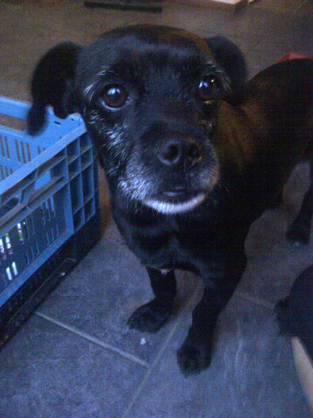 Is het een jong hondje? Hij heeft wel een beetje een grijs snoetje wat er weer op kan duiden dat hij misschien wat ouder zou kunnen zijn..