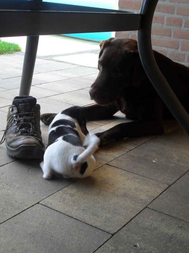 Haha, wat vervelend nou.. dat je op moet passen.. Heerlijk pupje en volgens mij heeft je labrador het ook perfect gedaan als oppas!