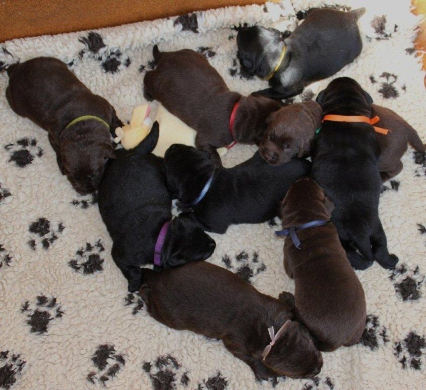 Zo'n snoezebolletjes. Heb de drie zwarte teefjes bij ons bezoek allemaal geknuffeld. Eentje van deze drie wordt van ons. De fokker gaat aan de hand van het karakter de puppy's proberen bij het juiste baasje te krijgen. Aangezien dit ons eerste hondje wordt gaat ze proberen om de rustigste aan ons te geven, dus nog even afwachten welk pupje het wordt.