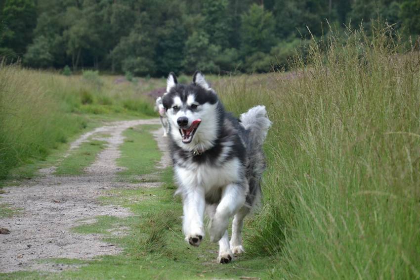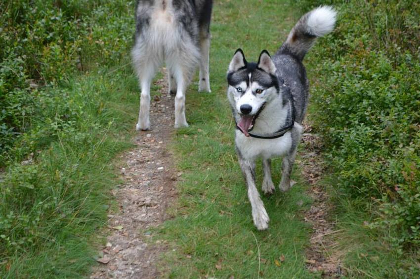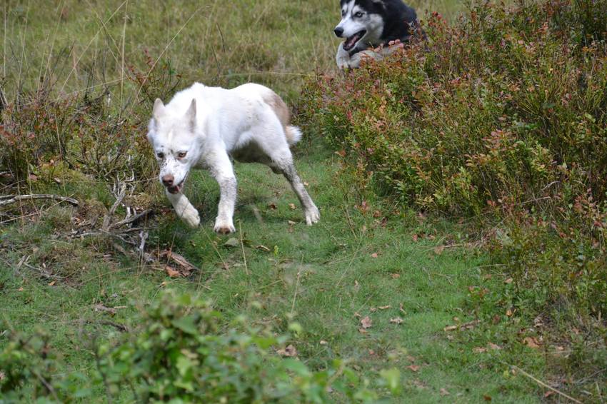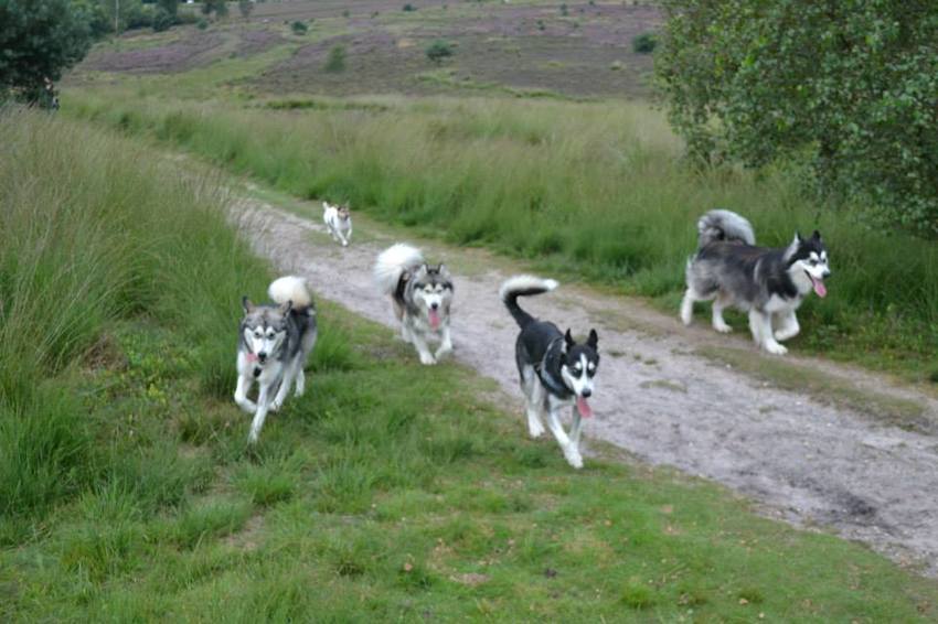 zonder het tuigje was het af en toe wel wat lastig in het begin, van een afstand denk je : oh daar komt die weer aan , oh nee toch niet haha. maar je ziet behoorlijke verschillen tussen de hussen , kwa kleur ( en masker ) maar ook hoe ze rennen.