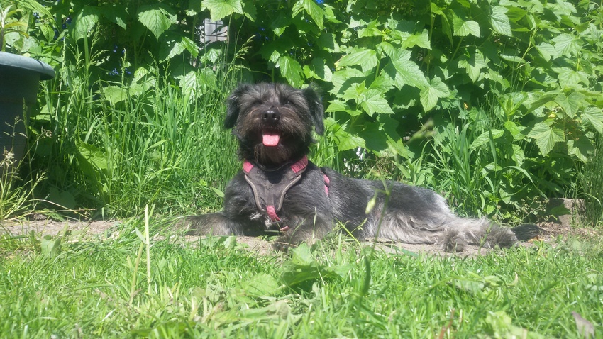 of Moh en ik genieten van het zonnetje in de moestuin.