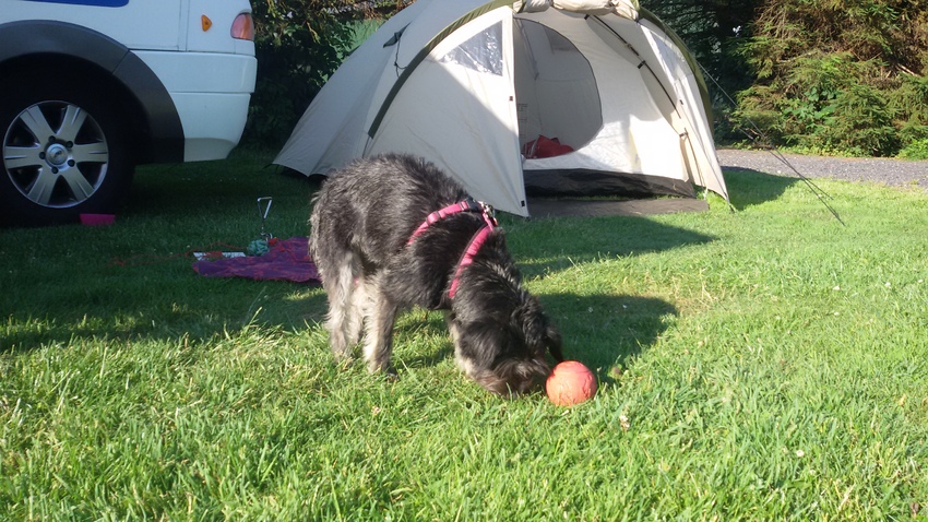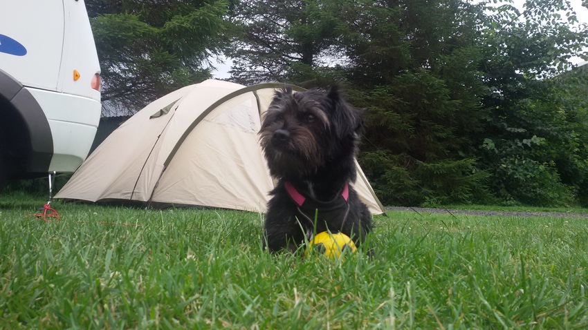 Na een hele dag waken hoopte ik dat ze zwaar in coma zou liggen in de nacht. Maar helaas, het waken ging gewoon door. En helaas was het erg druk met mensen die naar de wc gingen en langs onze tent liepen. Ik heb bijna de hele nacht Moh moeten sussen zodat ze niet de hele camping wakker zou blaffen.