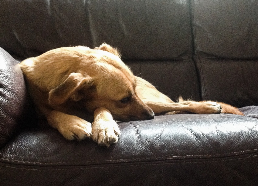 Nee maar ik ga het morgen wel in huis halen. Als Bo morgen nog steeds zo is dan ga ik morgen gewoon weer naar de DA. Ze ligt alleen maar op de bank....