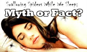 Het verhaal doet de ronde dat er ’s nachts spinnen in onze mond zouden kruipen en dat we die per ongeluk zouden inslikken. Het gegeven zou zelfs wetenschappelijk onderzocht zijn door een jaar lang slapende personen te filmen. Waarschijnlijk moeten we alles nuanceren en is slechts een deel van het verhaal correct. De kans dat er werkelijk spinnen in onze mond kruipen is klein. Wel is het mogelijk dat er zeer kleine spinnetjes eieren leggen boven je bed. Als die eieren dan uitkomen, vallen de baby spinnetjes naar beneden en als je dan toevallig met je mond open slaapt, komen ze in de longen terecht. Als je overdag moet hoesten, komen ze er opnieuw uit. Geschat wordt dat elke persoon 1 à 5 spinnen per jaar eet.