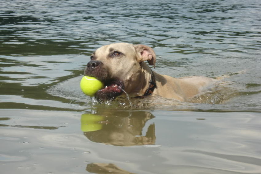 Kira die nam met gemak een bal van de deur en sprong met grote boog in het water. Nu springt ze zo niet meer vanwege haar artrose, anders zou ze het nog doen met haar 12 jaar.