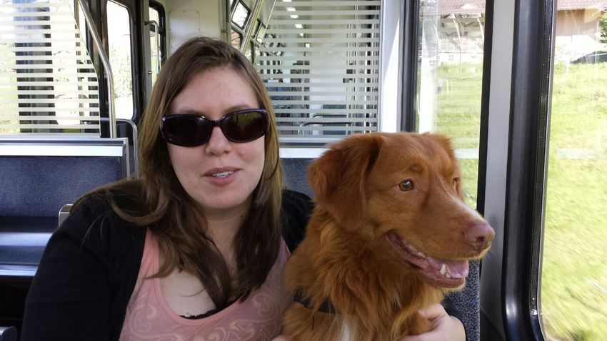 We hebben heel veel treintjes genomen, en dan mocht ik naast vrouwtje op het bankje naar buiten kijken! Al was ik ook heel vaak moe en dan ging ik lekker liggen slapen in de trein.