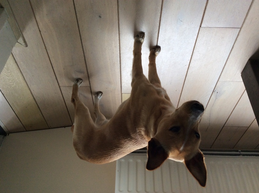 Ik denk dat mijn bruintje relatief dicht bij de "echte" Podenco Andaluz zit. Wispa heeft ook echt Podenco dingen die Cosmic juist niet heeft, een langere snuit, een langere rug, maar wel weer een rare vacht voor een Podenco Andaluz..